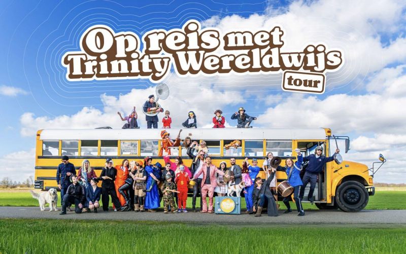 Trinity Wereldwijs gaat rondom de herfstvakantie op tour. Met een gloednieuw album vol te gekke liedjes rijden ze in hun grote, gele schoolbus door heel Nederland. Ze komen ook bij jou in de buurt – mis het niet!