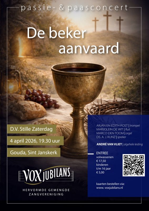 Vox Jubilans geeft op zaterdag 4 april hun traditionele Passie & Paasconcert in de Sint-Jan. Het thema van het concert is “De beker aanvaard”