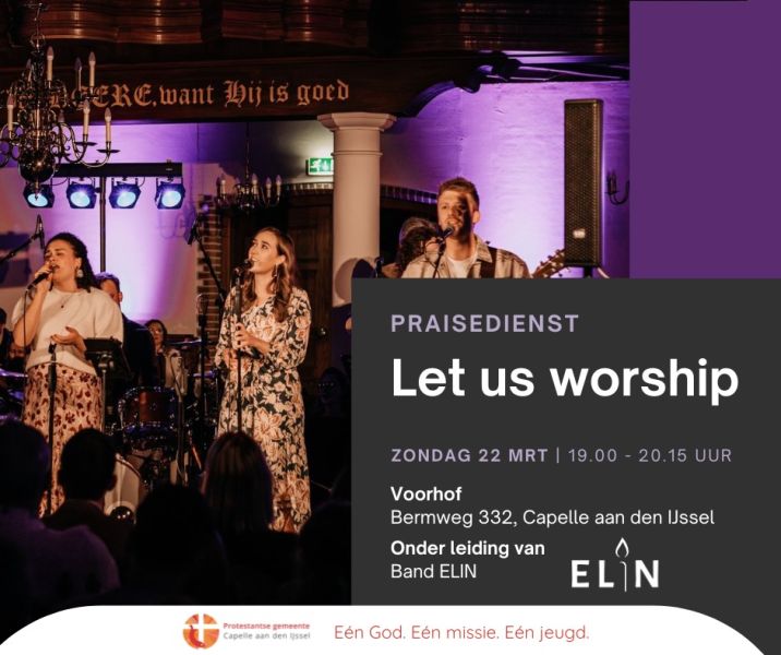 Op zondagavond 22 maart organiseeert de protestantsekerk in Capelle a/d IJssel hun eerste Praisedienst! Een worshipavond samen met de band_elin Dat wil je niet missen toch?