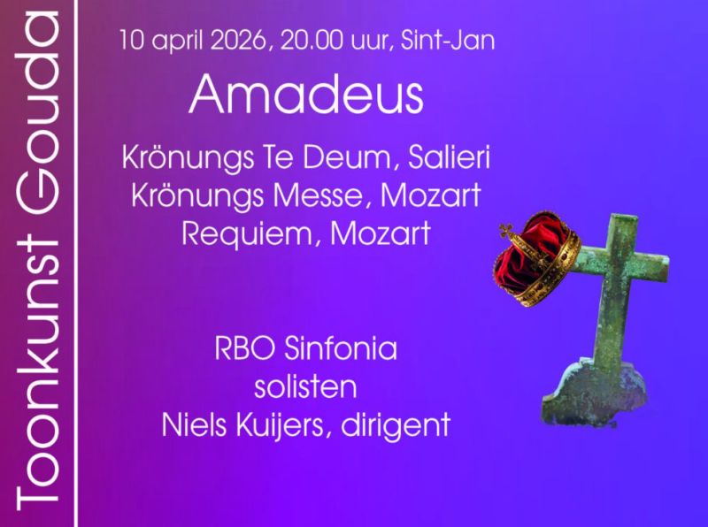 Toonkunst Gouda geeft een concert in de Sint-Jan met als thema ‘Amadeus’. Op het programma staan het Requiem en Krönungsmesse van Mozart en van Salieri het Krönungs Te Deum.