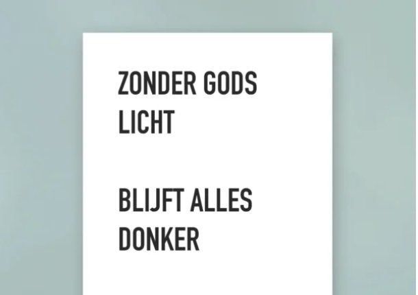Deze bestanden zijn direct te downloaden in drie varianten, zodat je ze zelf kunt printen, afdrukken of digitaal verwerken en ze perfect aansluiten bij jouw behoeften. Zie: ZONDER GODS LICHT BLIJFT ALLES DONKER – VisjePosters