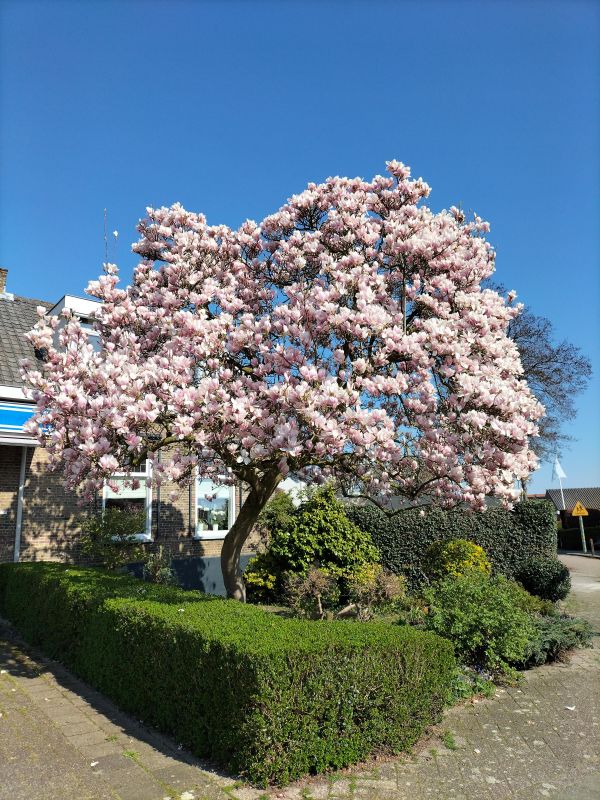 Vorige week maakte ik een foto van deze prachtige Tulpenboom (Magnolia) te bewonderen aan de Schoolstraat in Nieuwerkerk. Tijdens het fotograferen sprak een vrouw mij aan en zei wat is de schepping toch mooi he. Ik draaide mij om en zei u heeft helemaal gelijk mevrouw maar wat zegt u dat mooi de schepping. Toen ik dacht dat ze ging uitwijden over de schoonheid van de schepping zei ze verrassend en op enigszins dwingende toon maar ken je de Schepper ook. Zeker mevrouw want als je Gods hand in de natuur ziet erken je immers Zijn werk als Schepper. De vrouw had duidelijk een missie en ging verder waar ze gebleven was ik heb mijn hart aan Jezus gegeven sprak ze. We hadden er even een kort over en toen ze weer op haar fiets stapte riep ze nog het is allemaal genade. Fijn om gelijkgestemden te ontmoeten en de liefde voor de schepping te delen en ja de Magnolia is een schoonheid.