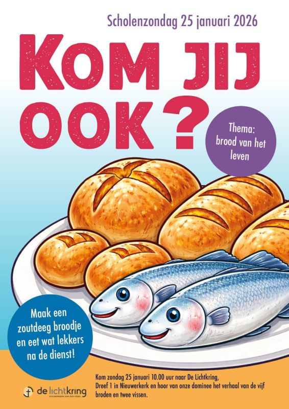 Op zondag 25 januari 2025, sprak ds. Buitendijk in De Lichtkring in Nieuwerkerk a/d IJssel (Delen is vermenigvuldigen) opnieuw over de wonderlijke spijziging (Johannes 6). Nu met oog op scholenzondag .